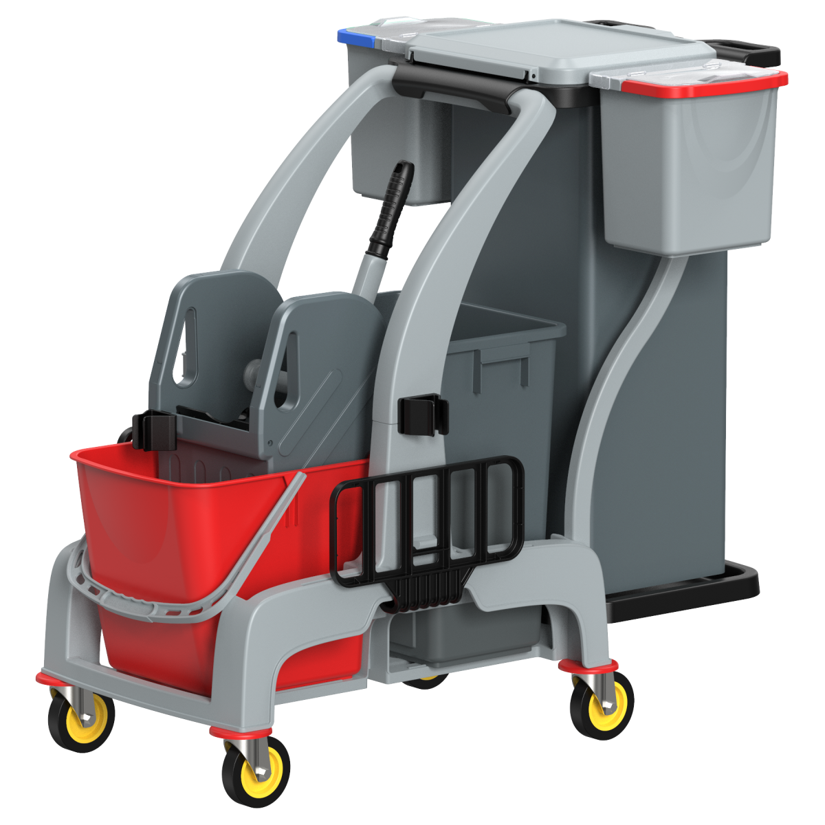 Multi-purpose plastic trolley 2 big bags & covered shelves