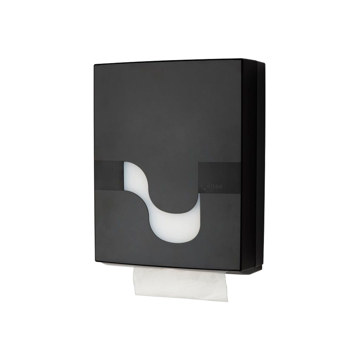 Συσκευή χειροπετσέτας μαύρη, όμορφο design, πλαστικό αρίστης ποιότητας. Για επαγγελματικό χαρτί χειροπετσέτας φύλλο-φύλλο (ζιγκ-ζαγκ).