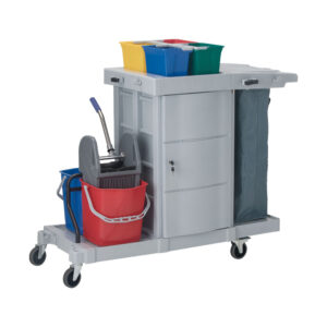 Πολυχρηστικό καρότσι καμαριέρας με ντουλαπάκι που κλειδώνει, 4 κουβάδες των 6L, σακούλα 75L και 2 κουβάδες σφουγγαρίσματος των 18L ο